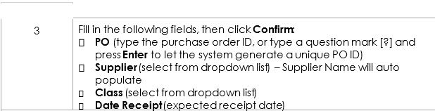 This document includes the standard operating procedures for viewing and manually entering purchase orders, and supplier receipts.
