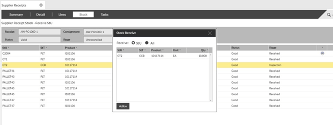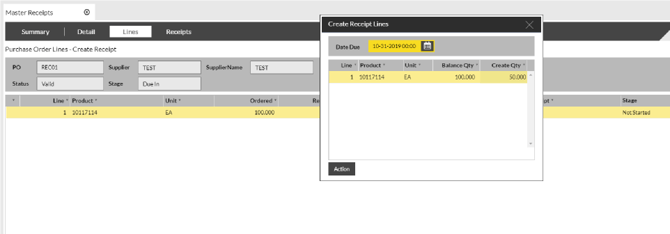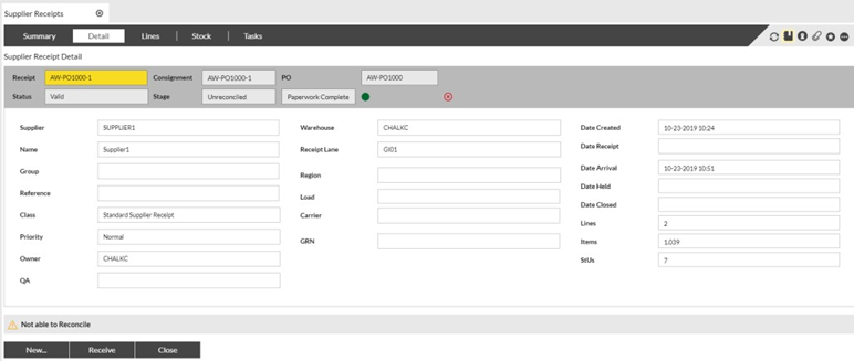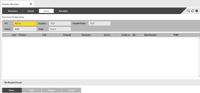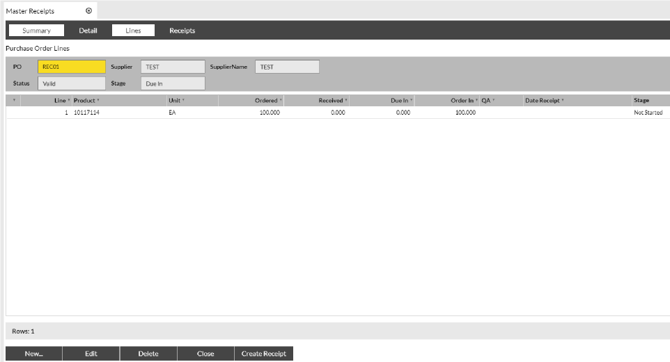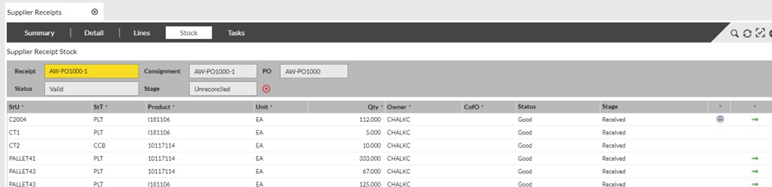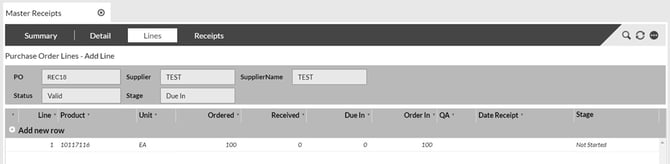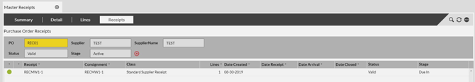 Click the Receipts tab. This displays all created Supplier Receipts within the Master Receipt and their current stage. |