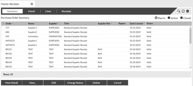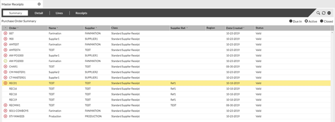 The Master Receipt will now have moved to the Active segment of the Summary screen. |