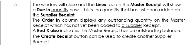 Purpose: The following table outlines the steps for manually creating a Supplier Receipt from within a Master Receipt