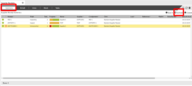 Click Arrived in the Summary tab, then click to highlight the Unreconciled receipt to be corrected. If no corrections are needed for an Unreconciled, go to Step 5i |
