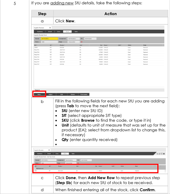 Purpose: The following table outlines the steps for manually entering a Master Receipt into SnapFulfil.