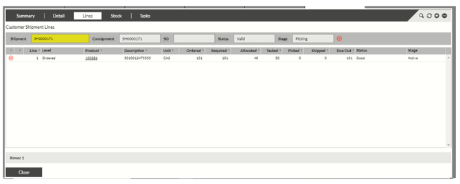 - If a line has a green tick alongside and the tasked quantity is equal to the required quantity, this indicates that the line is completely fulfilled and a pick task has been generated.