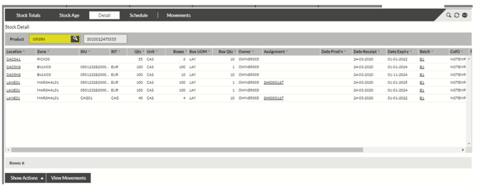 This will take you into the Stock by Product screen for the product.