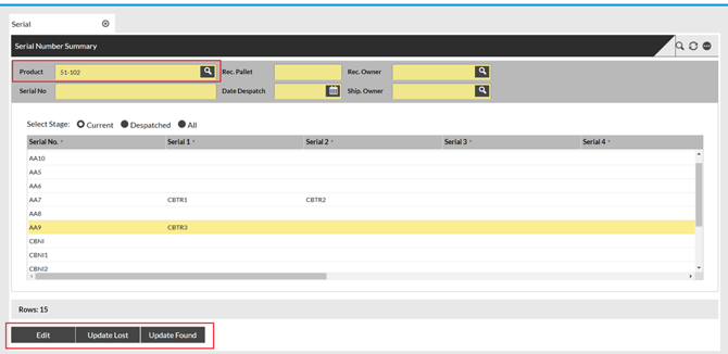 To update the serial as found click into the serial and select “update found” and confirm at the bottom