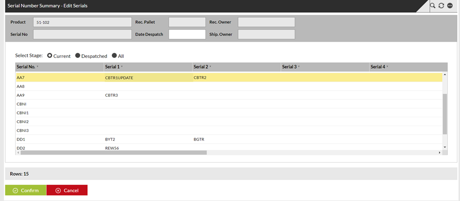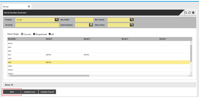 NOTE – Only the secondary serials can be edited. Primary serials can not be edited on this page. |
