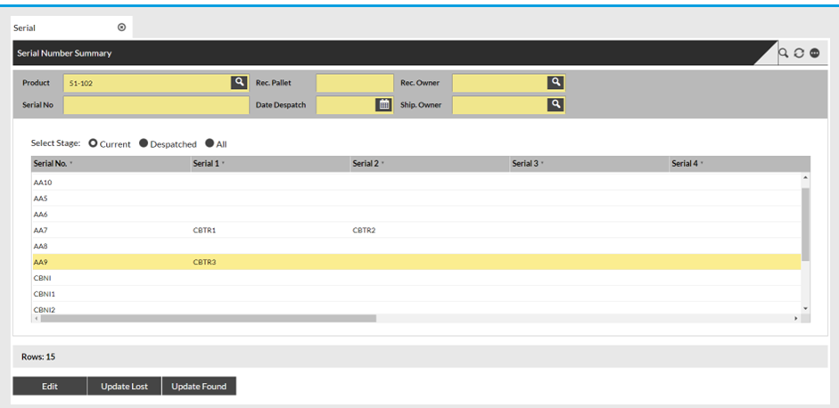 Edit - This option will allow you edit secondry serials. Update Lost – When choosing update lost, that sets the serial to a 'Missing' stage on the Serial page. Update Found – . When you change this to update found, that moves the serial back to ‘Active’.