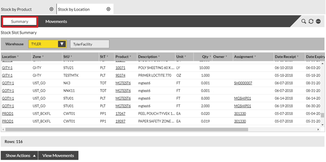 Purpose The following table outlines the steps for viewing a detailed breakdown of which stock exists in which locations.
