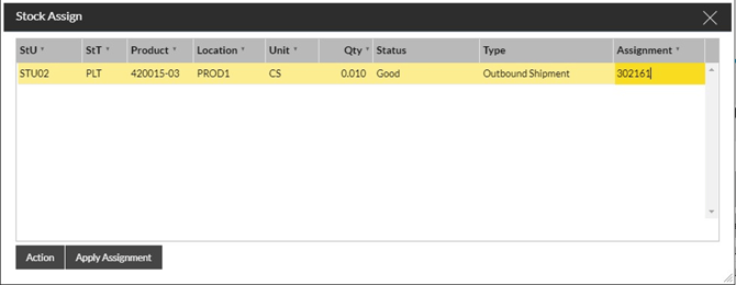 Assign allows specific stock to be assigned and reserved against a specific goods-out shipment. Deassign removes this reservation. |