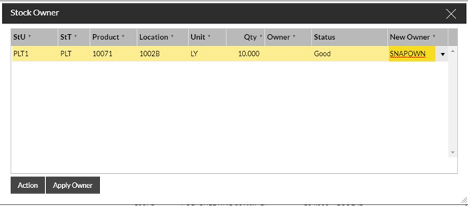 Click Show Actions, Choose Change Owner and drag in the inventory line into the dialog. Choose the New Owner and click Action. |