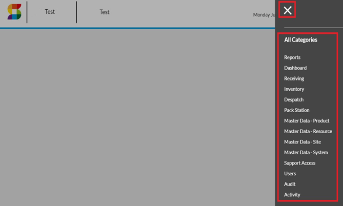 The topics are displayed under the heading All Categories. To close the Menu of Topics click the X icon. |