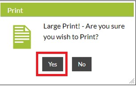 When the Print option is clicked a dialog asking if the user wants to print the page opens up. Click Yes to Print.
