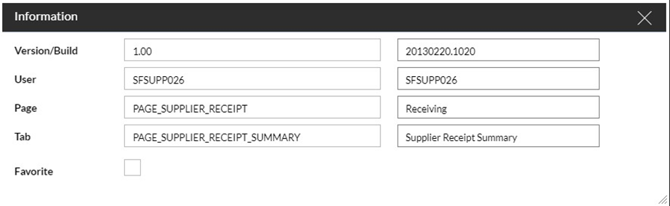 Information – This icon is used to display the name of the Page or Screen and the software version.