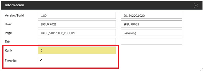 To make a page a favorite and have it open up as a particular position on the tabs, click the Favorite checkbox and choose a rank.