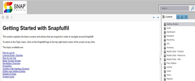 Help – The Help icon brings up the Help pages for SnapFulfil web on a new tab.