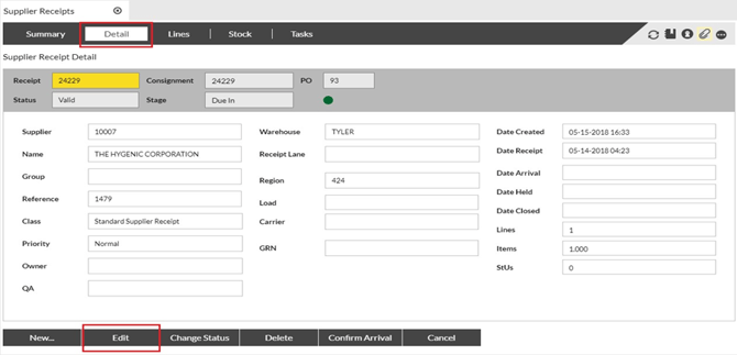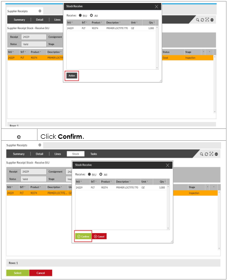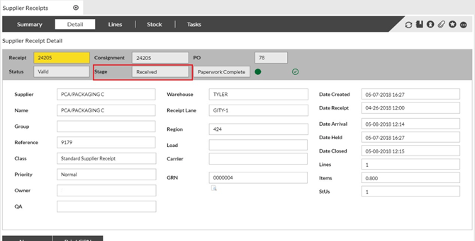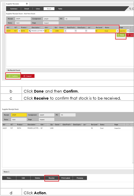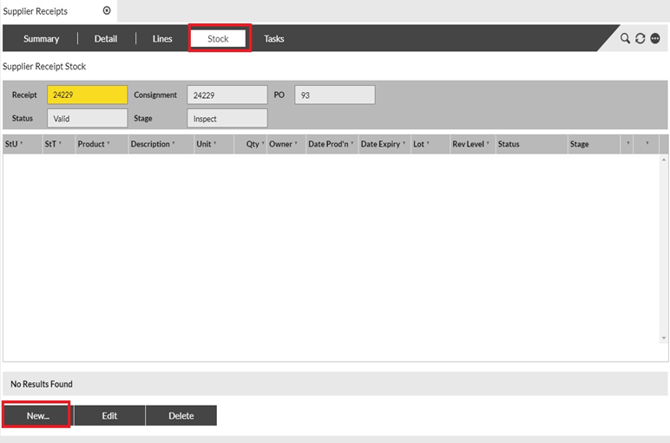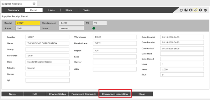 Purpose: In order to receive stock against a Supplier Receipt, the stage of the receipt must first be advanced to “Inspect”. The following table outlines the steps for this process.
