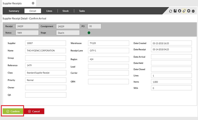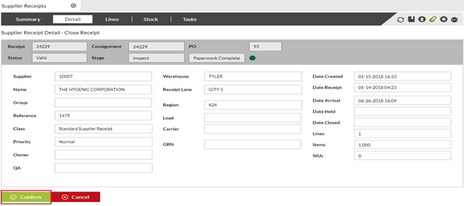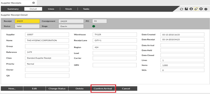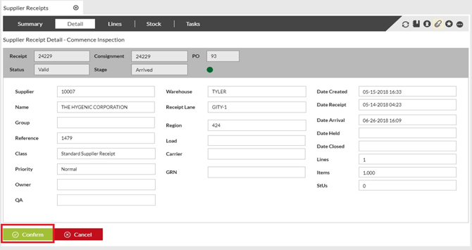 Confirm Arrival and Progress Supplier Receipts to Stage Inspect