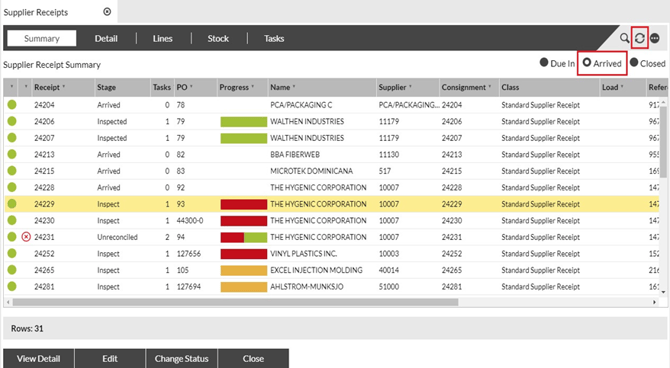 Click Arrived in the Summary tab, then click the refresh arrow in the upper right corner. |