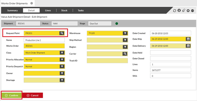 stock and create picking tasks for any work orders that have been released. Any orders with shortages will not have pick tasks automatically created and will not be available for picking.