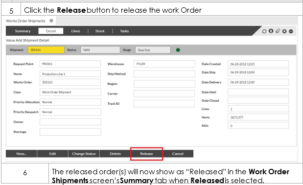 Purpose: The following table outlines the steps for releasing work orders for stock allocation.