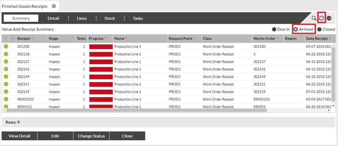 Click Arrived in the Summary tab, then click the refresh arrow in the upper right corner. |