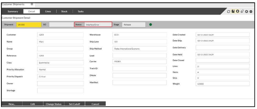 Sometimes you may get an order on the system with a status of 'Interface Error' and this won't allow you to progress it.