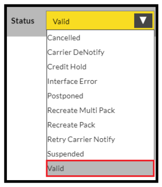 This will display a drop down box which should default to Valid.